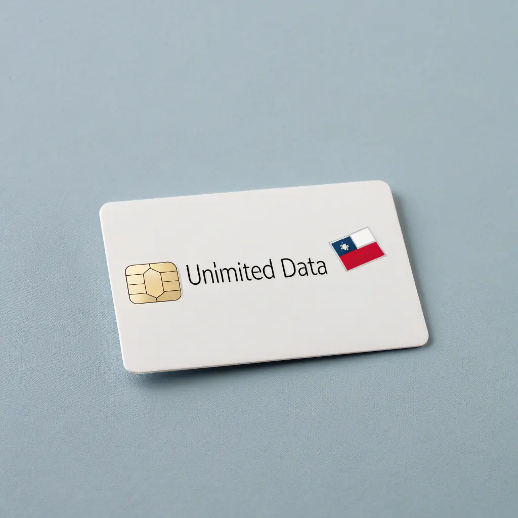 La Tarjeta SIM Datos Ilimitados ofrece acceso ilimitado a Internet para turistas en Chile, con un número local y una validez de 30 días. Es ideal para viajeros que necesitan conectividad constante para navegación, redes sociales y streaming. La tarjeta SIM es compacta, con un diseño simple que presenta la bandera chilena y la etiqueta ‘Datos Ilimitados’.