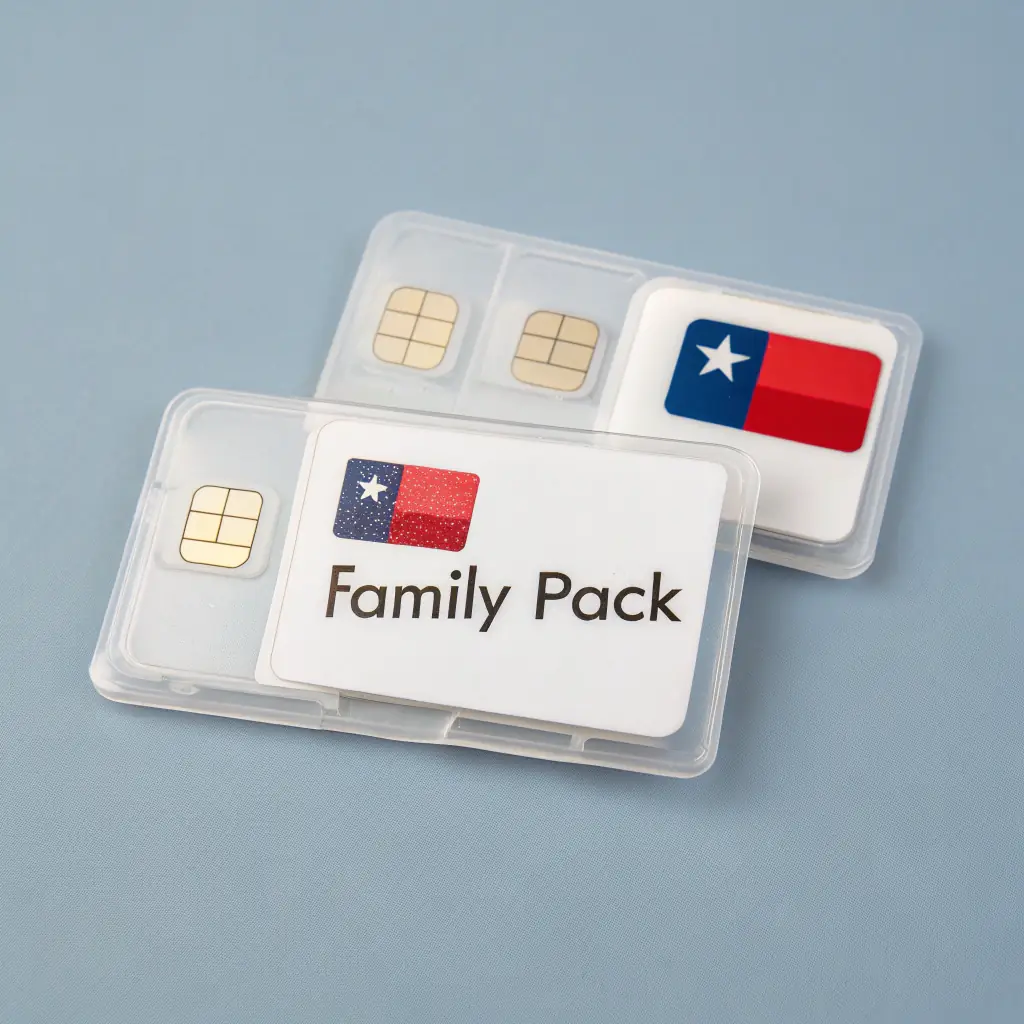 La Tarjeta SIM Paquete Familiar está diseñada para grupos o familias que viajan juntos en Chile. Incluye múltiples tarjetas SIM, cada una con llamadas, mensajes de texto y datos ilimitados, todas válidas por 30 días. El paquete está cuidadosamente organizado con tarjetas SIM individuales en un estuche compacto, lo que facilita su distribución entre los miembros de la familia. Asegura que todos permanezcan conectados durante todo el viaje.
